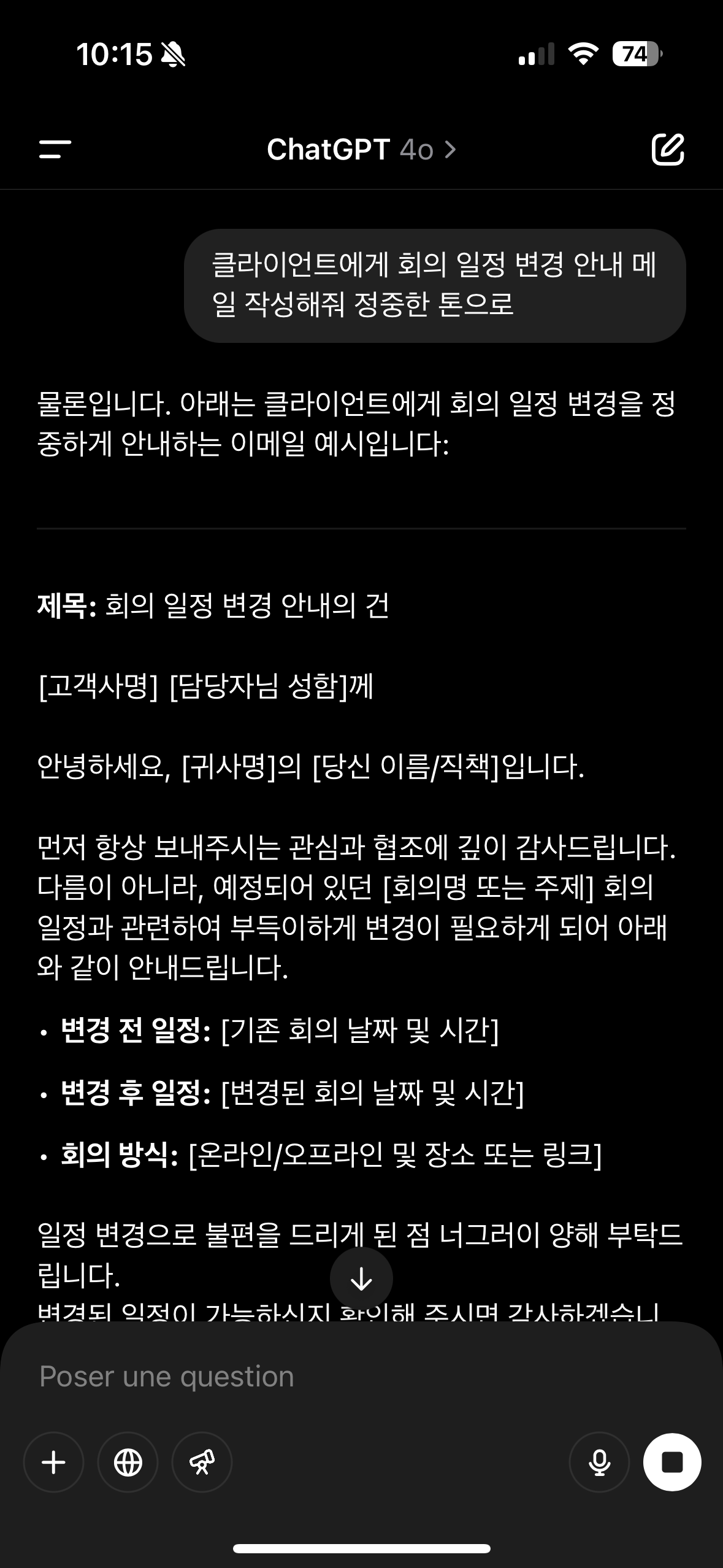 - 이메일 작성: 공식적인 이메일 초안을 작성하는 데 도움을 받을 수 있습니다.